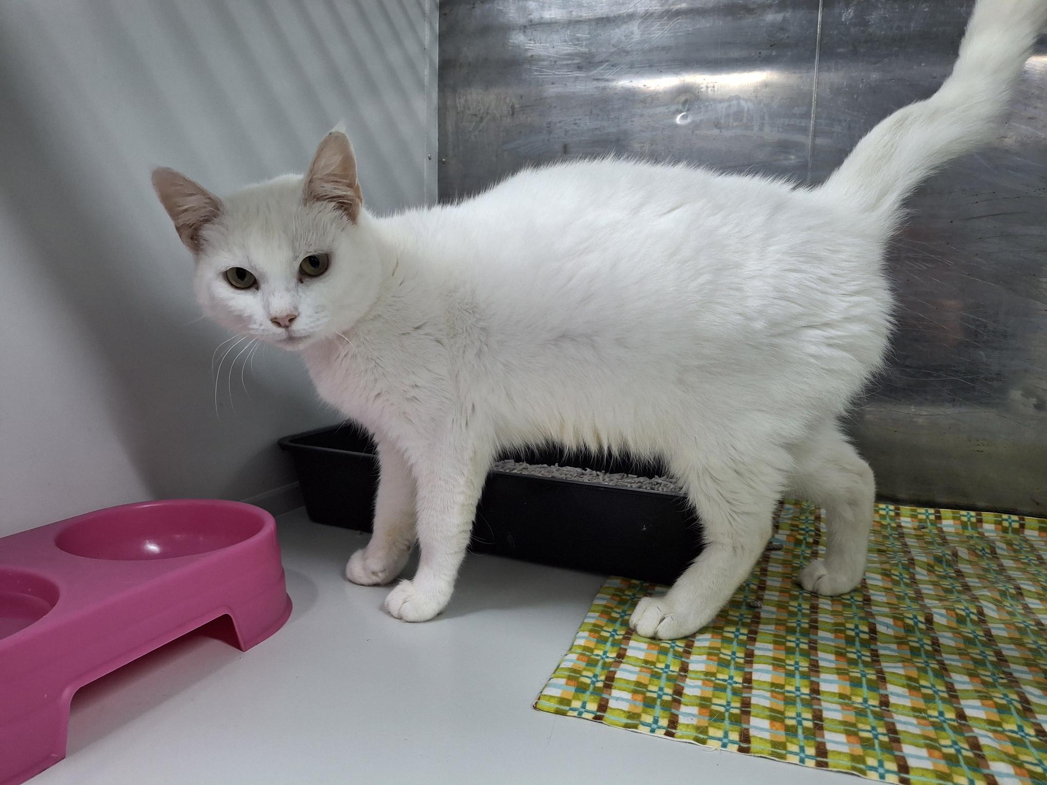 Additional Info : Snowy is searching for her forever home. She is sociable, loves her food and a pat but is not keen on being picked up.