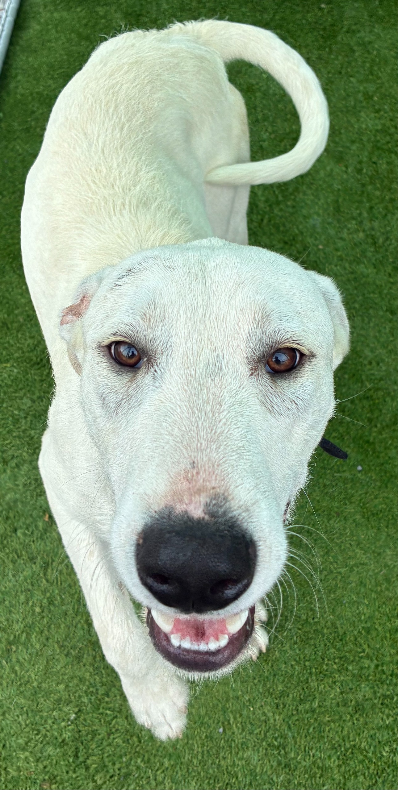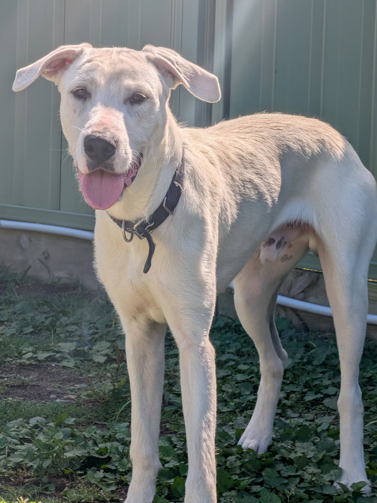 Additional Info : Meet Zeus, a striking 10-month-old white Bull Arab with a friendly soul. This lovely boy is great with other dogs and ready to bring his loyal, affectionate energy to a new home. If you're looking for a sweet-natured companion for your next adventure, Zeus is the perfect match!